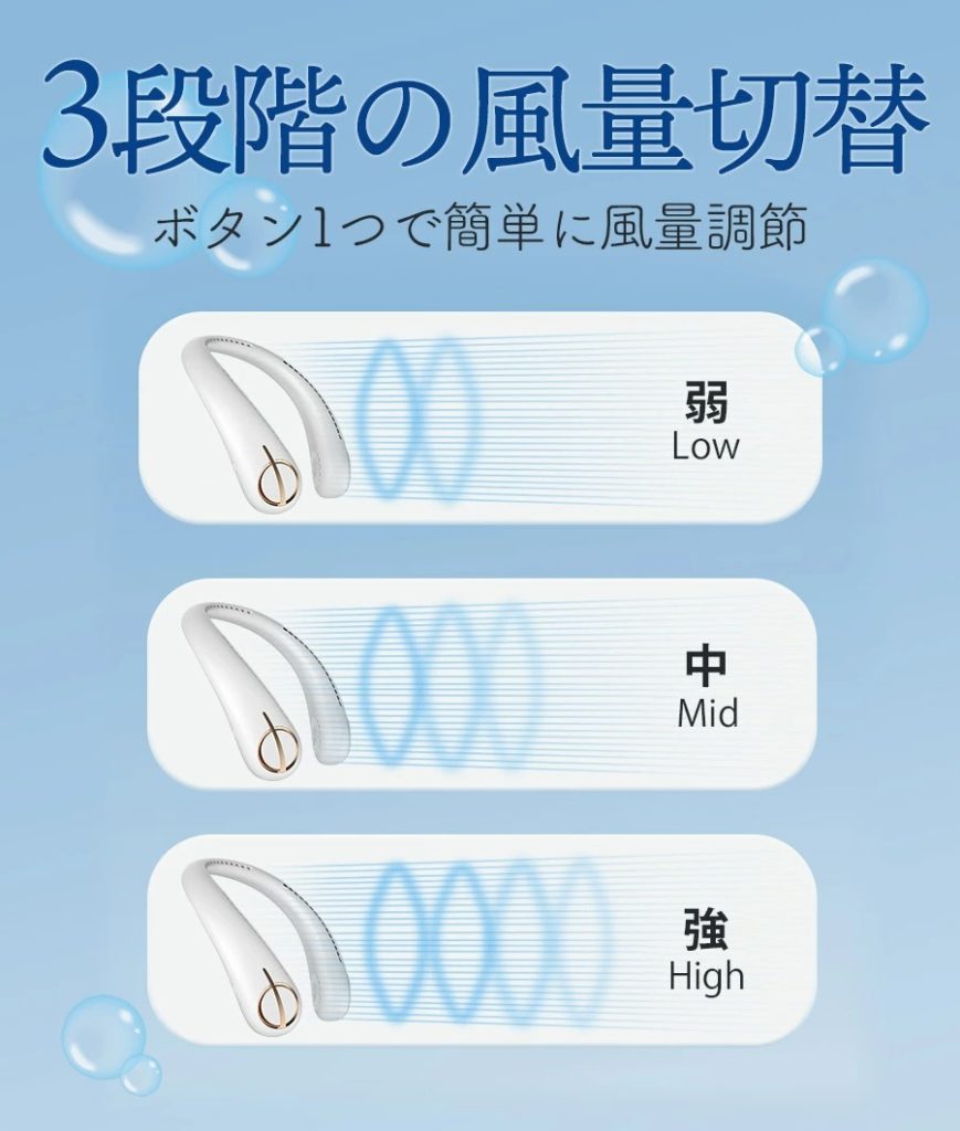 ここまでは、今までにもよくある首掛け扇風機ですよね。