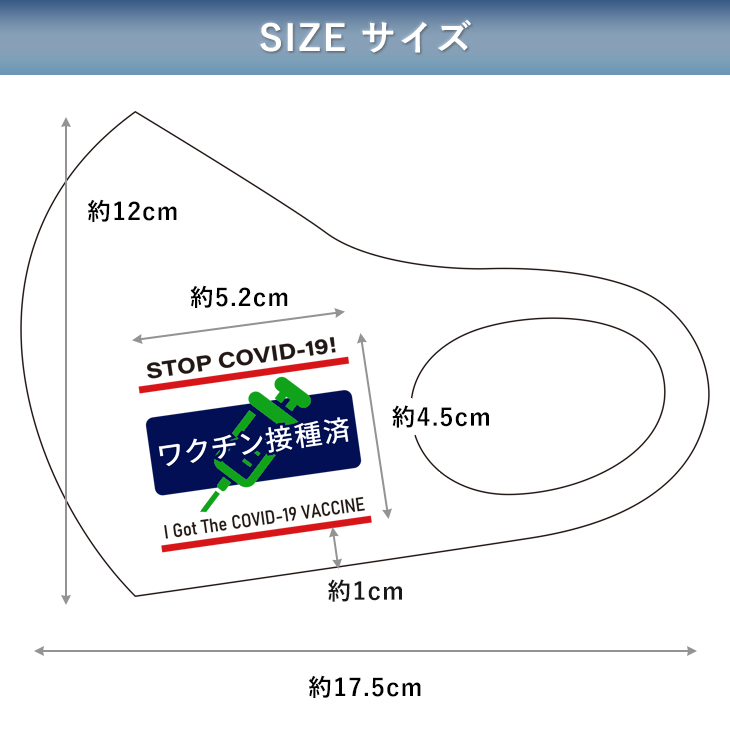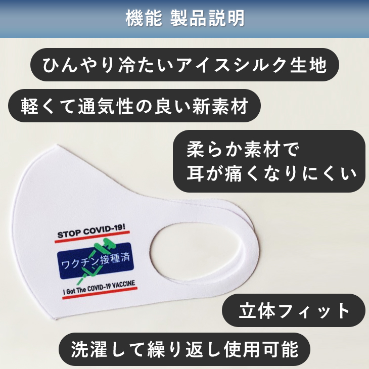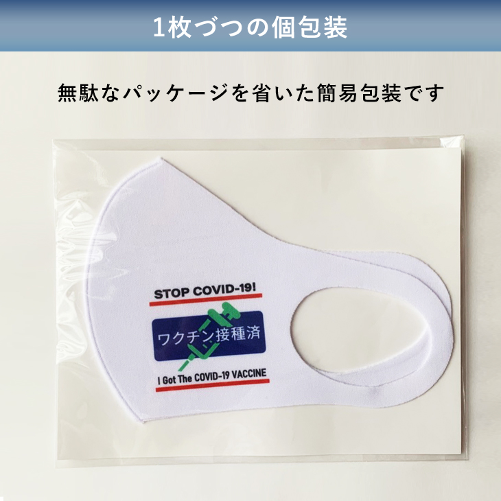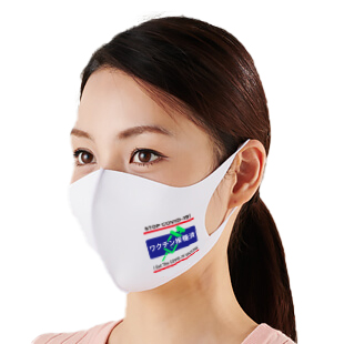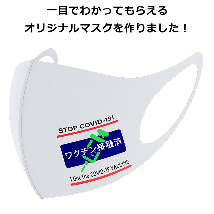 日本語と英語で「ワクチン接種済」をプリントしたオリジナルデザインのマスク。