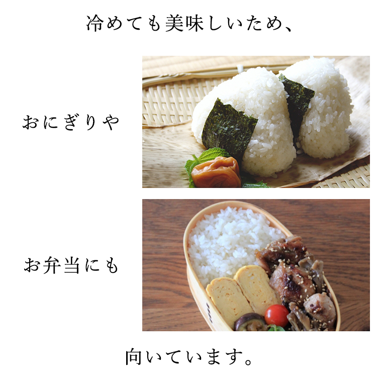 冷めても美味しいご飯のため、お弁当やおにぎりにも向いています